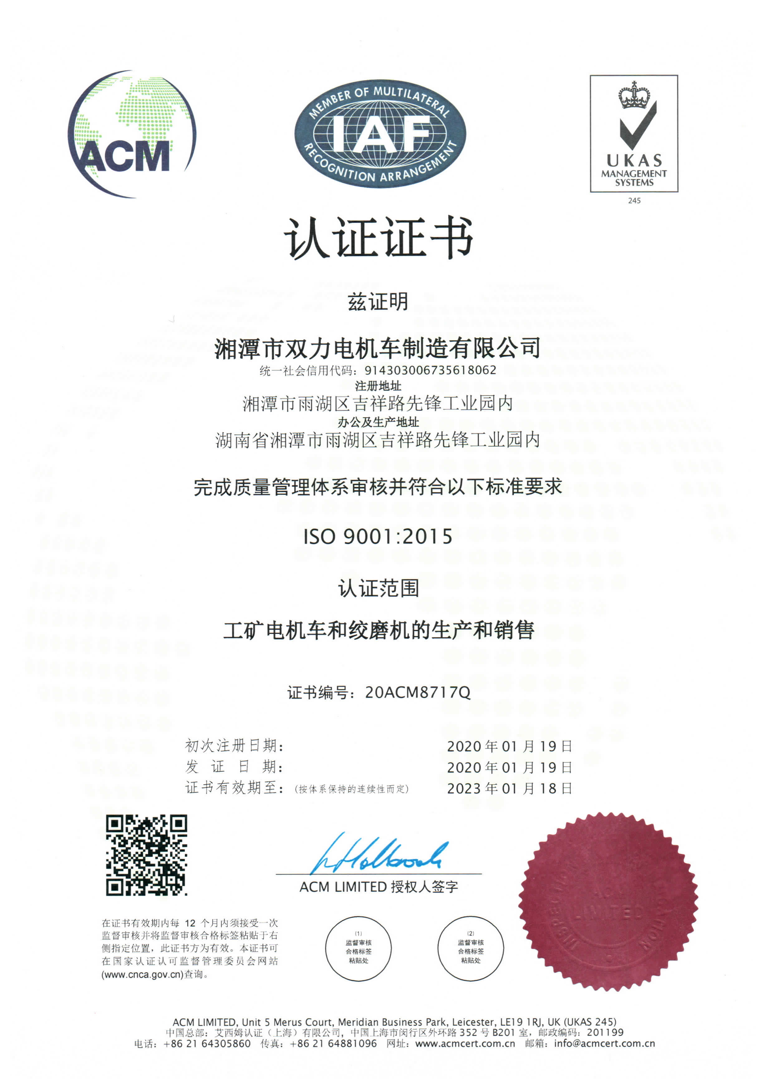 質(zhì)量管理體系認(rèn)證證書